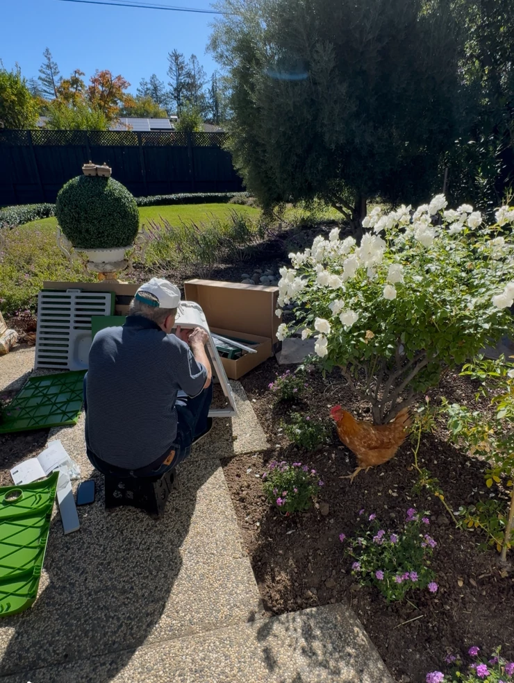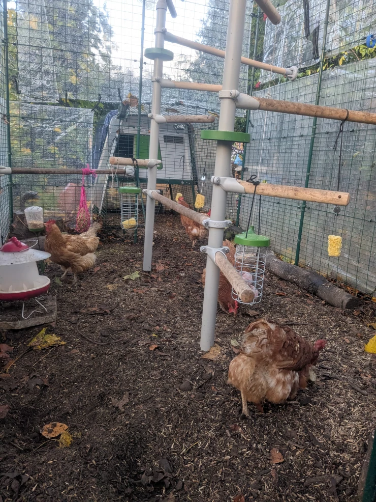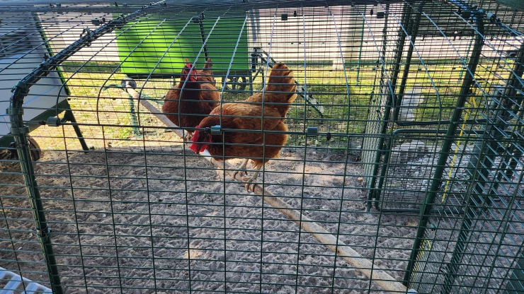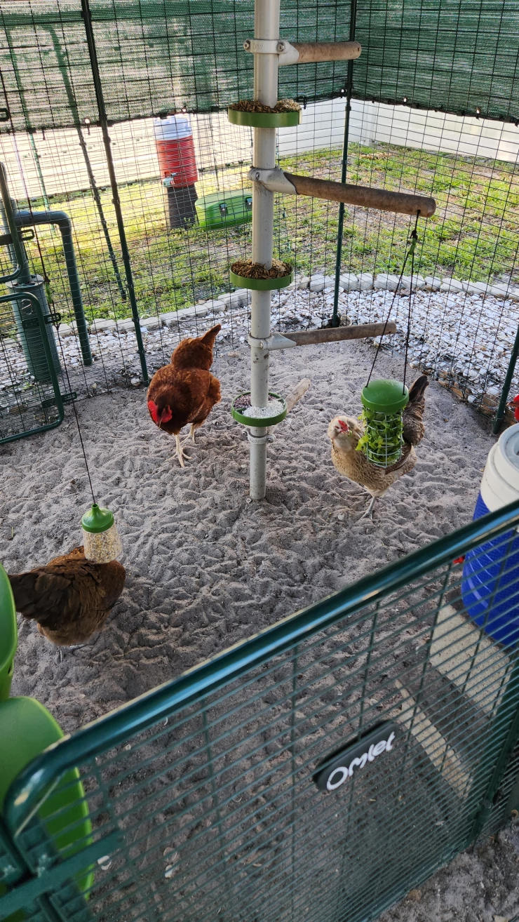 Beschriftung Die mädchen, die jetzt ihre dritte erweiterung des hühnerstalls genießen (und langsam die kontrolle übernehmen, haha)