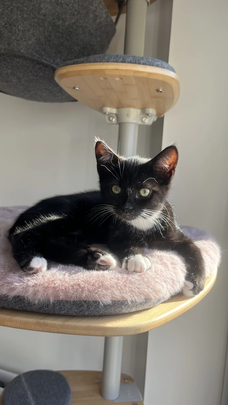 Beschriftung Rodney entspannt sich in seinem neuen bett 😻.