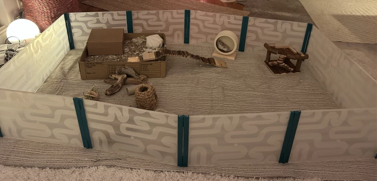 Beschriftung Kaninchenwunderland! peeta und primrose lieben ihren spielplatz im freien über alles! zwei einfach hohe plattformen, die mit einer doppelt hohen verbunden sind, mit zwei grünen häusern, die sie über alles lieben!