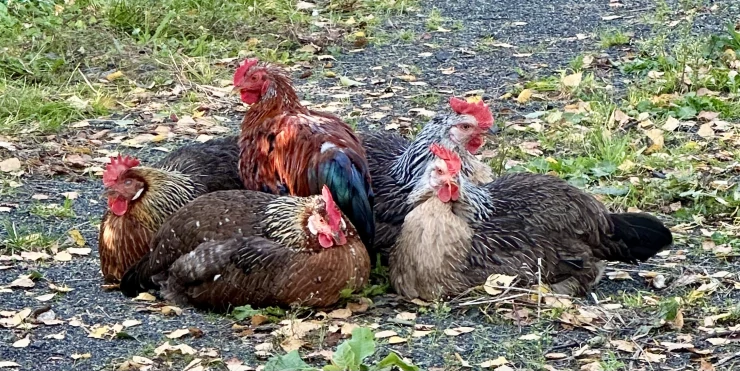 Beschriftung Die hühner sind so glücklich über ihr neues zuhause und mich! sauberer, einfacher, besser