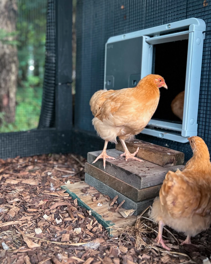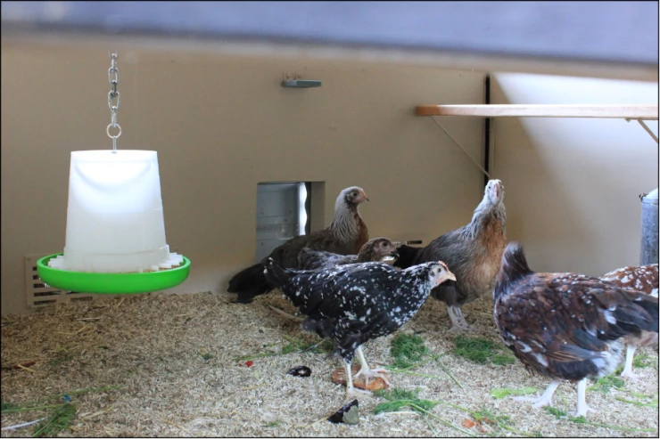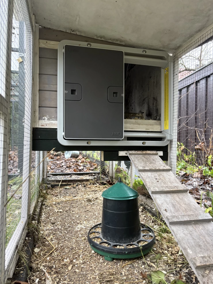 Beschriftung Innen hühnerstall mit Omlet automatischer tür und licht