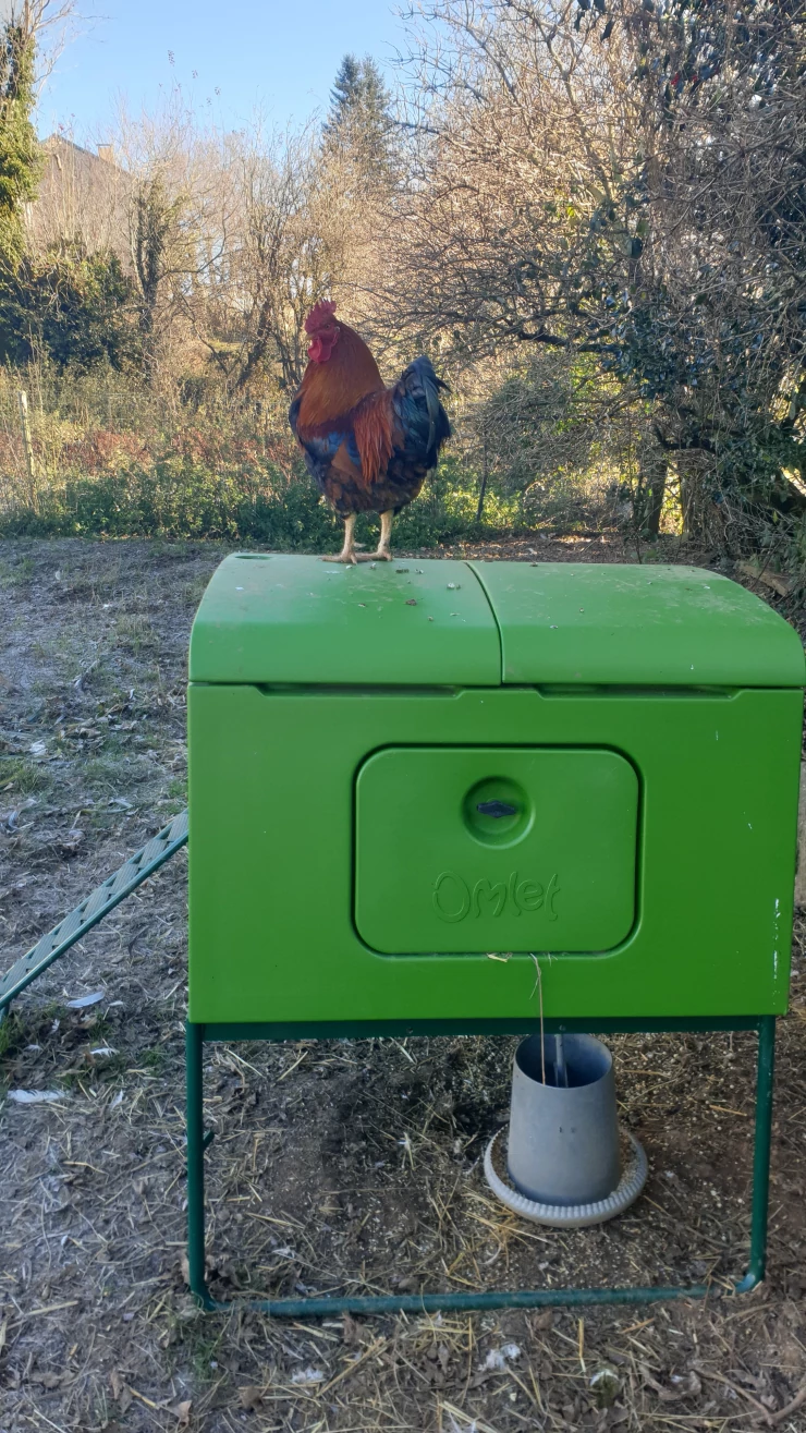 Beschriftung Wir lieben unsere automatische stalltür. danke Omlet.