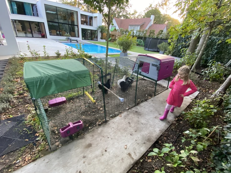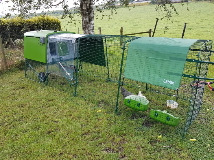 Beschriftung Viel platz für ihre hühner in den Omlet ausläufen!