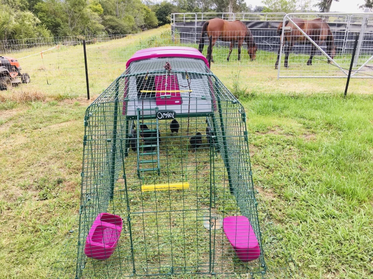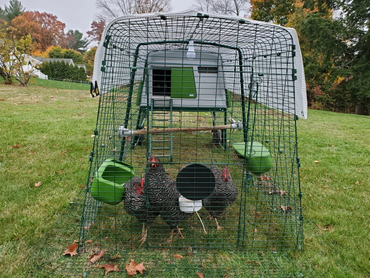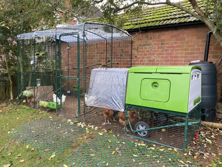 Beschriftung Eglu Cube großer hühnerstall und Eglu Go hühnerstall im inneren von Omlet begehbarer hühnerauslauf