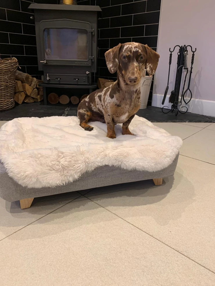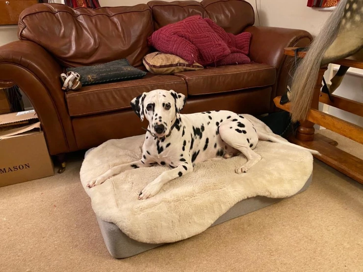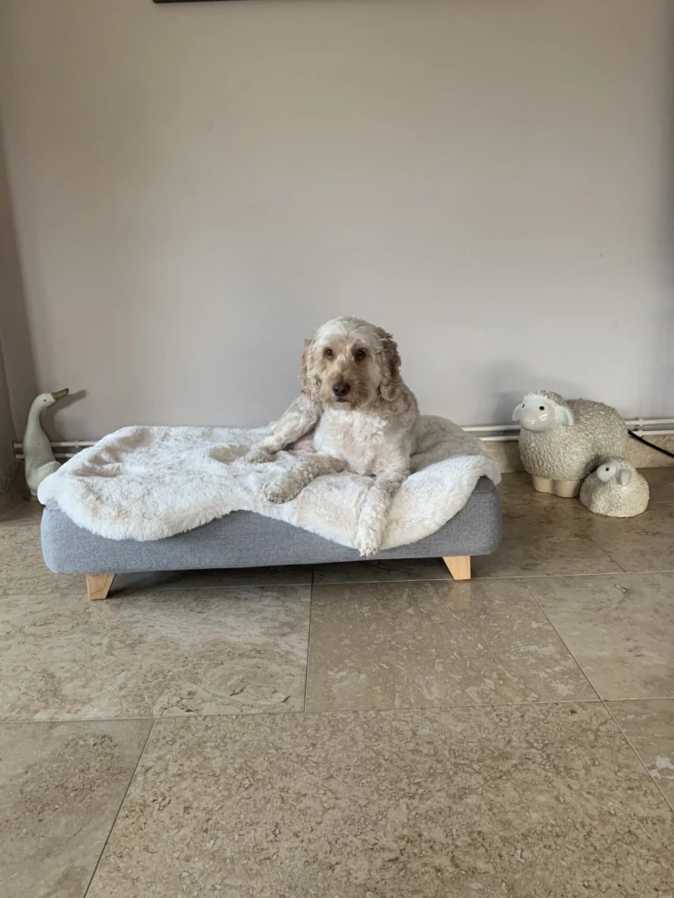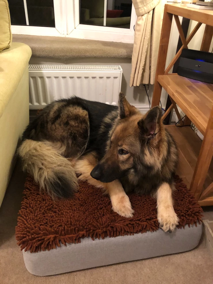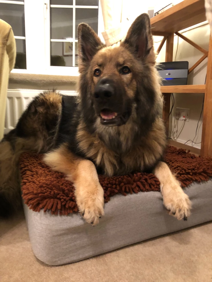 Beschriftung Henry liebt sein hundebett, vor allem den fell-topper!