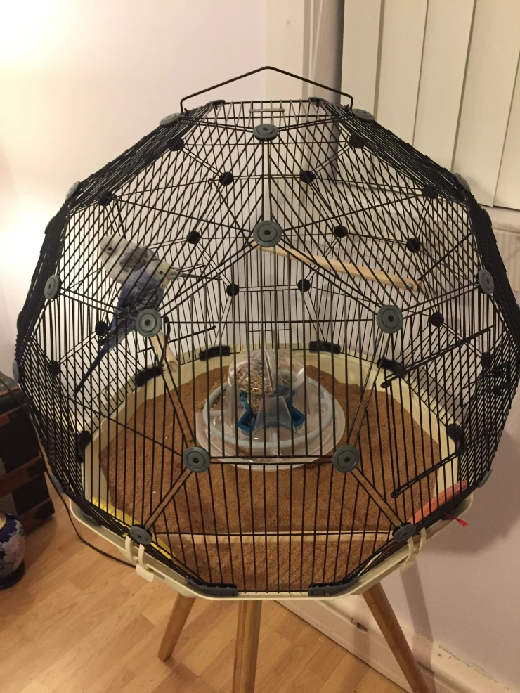Beschriftung Omlet Geo vogelkäfig mit schwarzem käfig, cremefarbenem boden und beinen