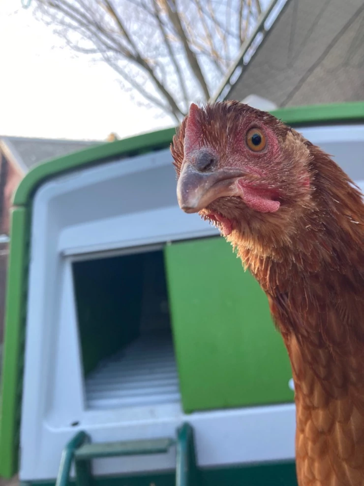 Beschriftung Huhn stehend auf Eglu Go hühnerstall räder