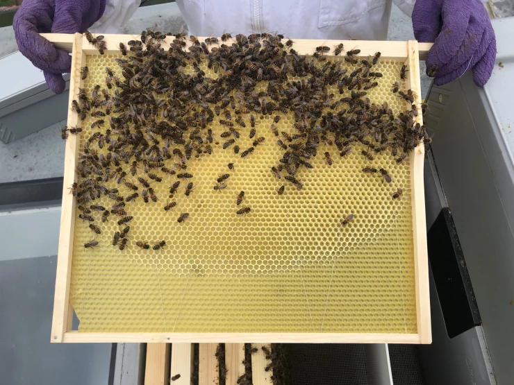 Beschriftung Brutrahmen mit wachsfundament montiert