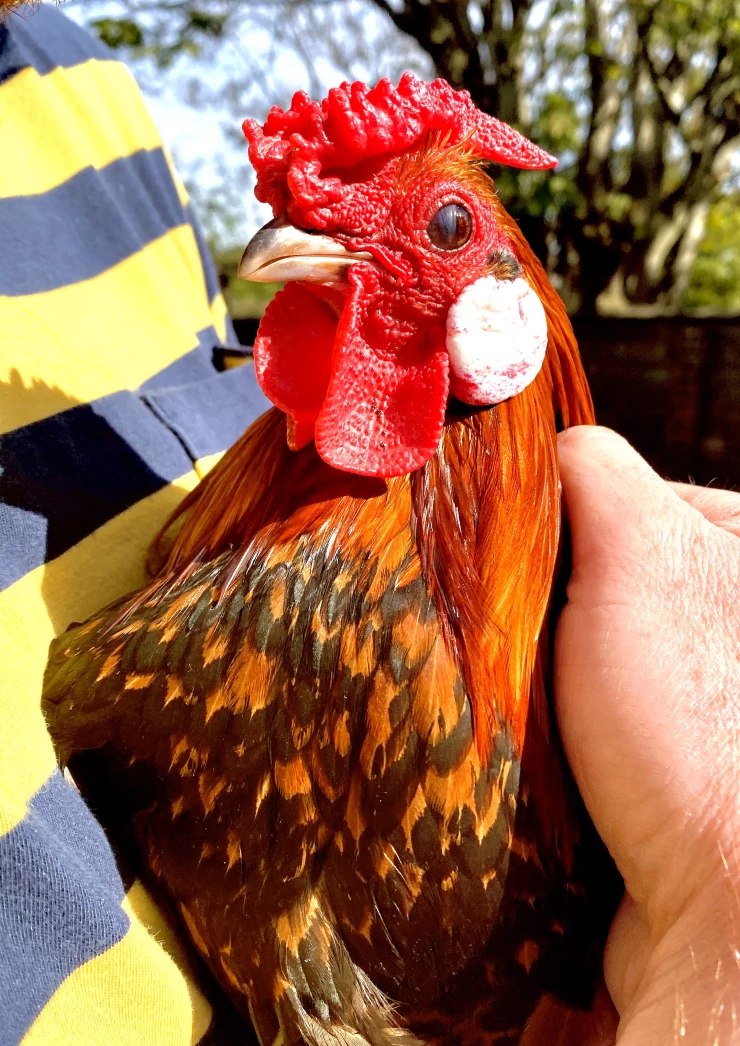 Beschriftung Boris unser 10 Monate alter holländischer Zwerghahn