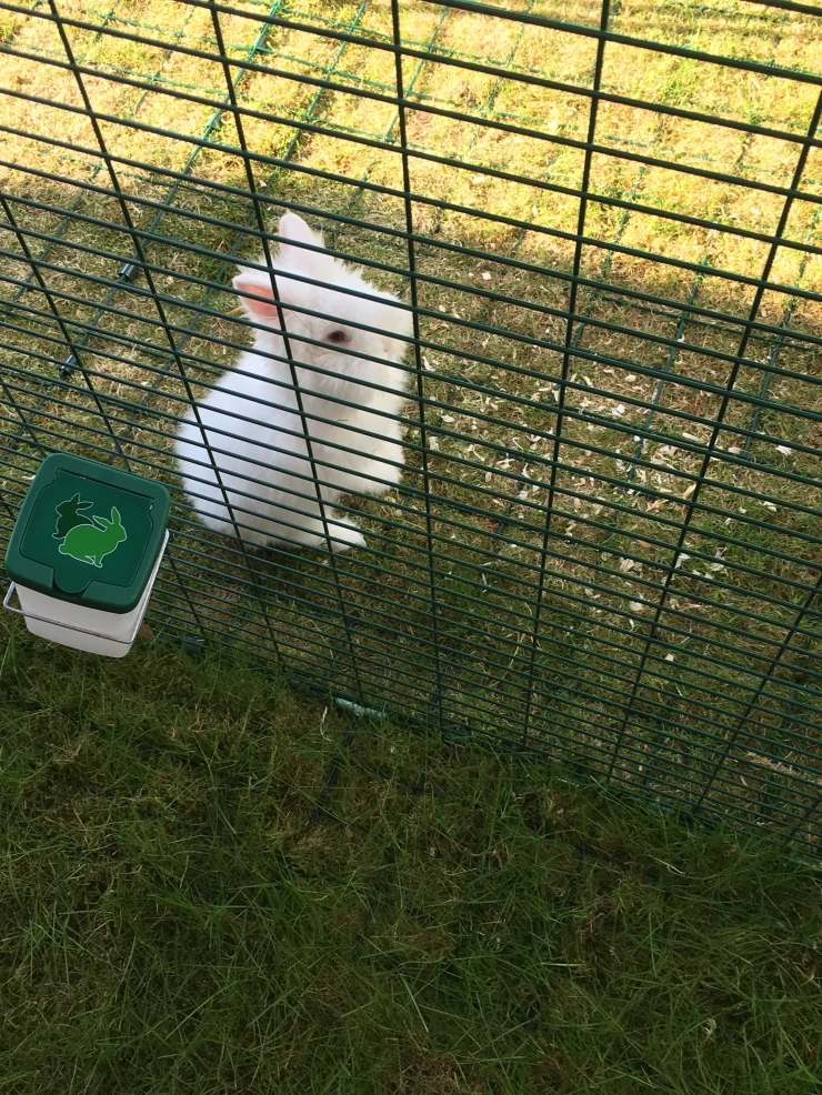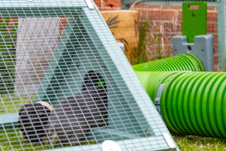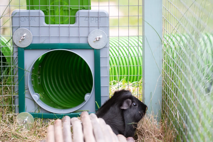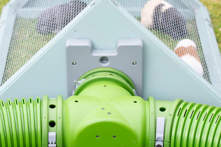 Beschriftung Die meerschweinchen erreichen ihren neuen auslauf dank ihrer Omlet Zippi tunnel und neuen t-stücke