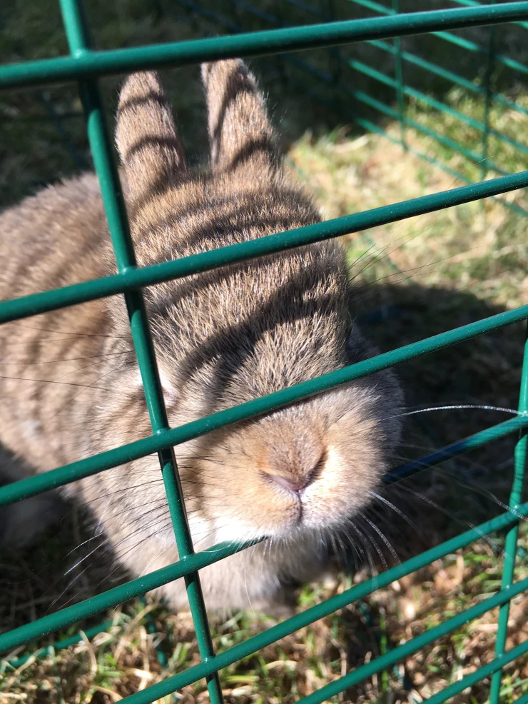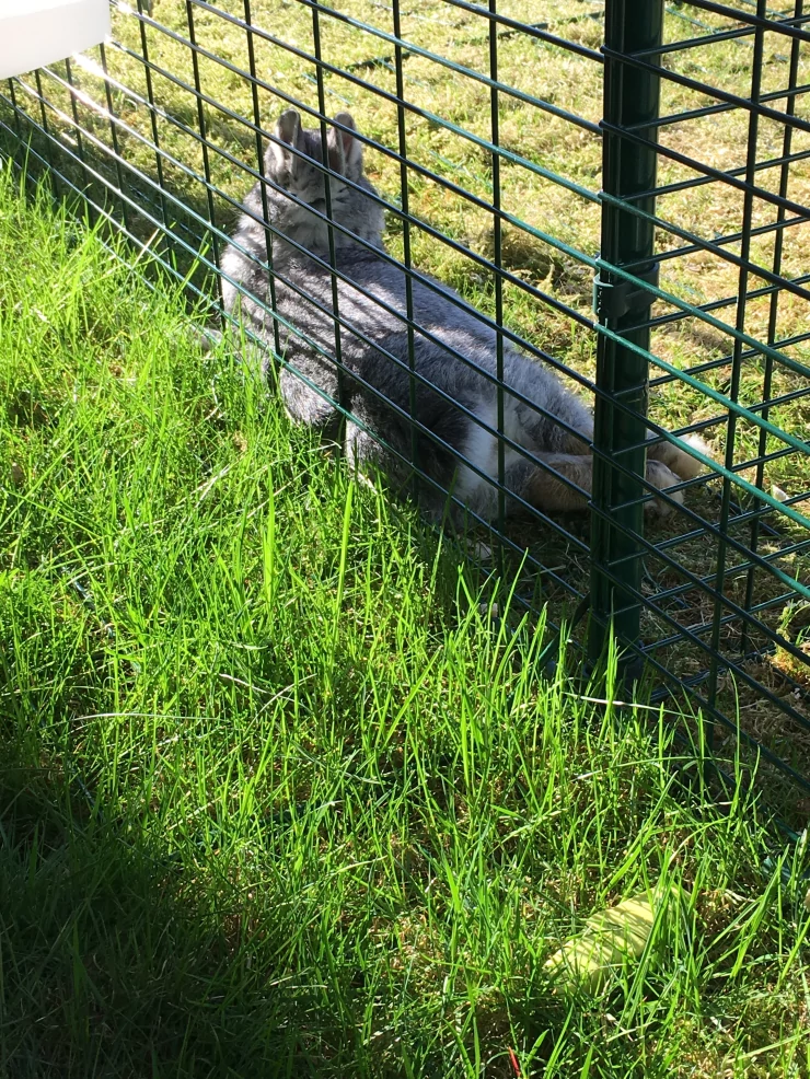 Beschriftung Die meerschweinchen kommen aus ihrem neuen auslauf in den auslauf, sie lieben es, dass sie jetzt so viele möglichkeiten haben, gras zu fressen!
