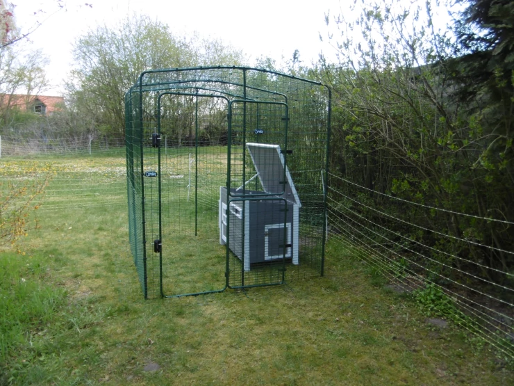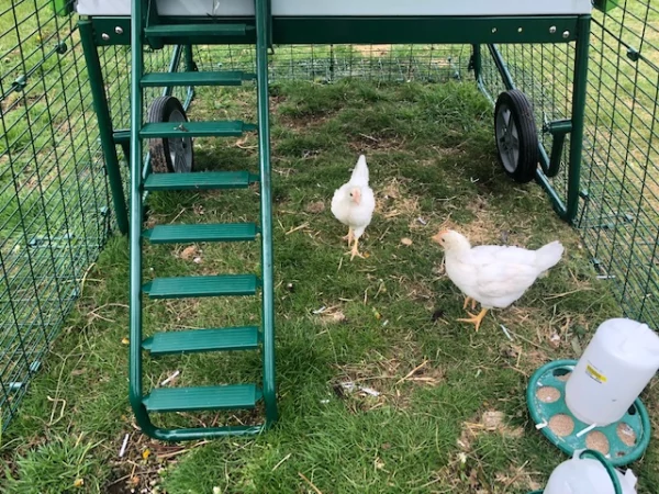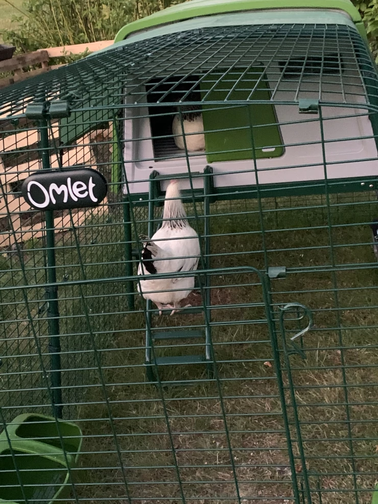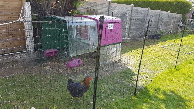 Beschriftung Lila Eglu Cube großer hühnerstall und auslauf im garten mit hühnern und Omlet hühnerzaun