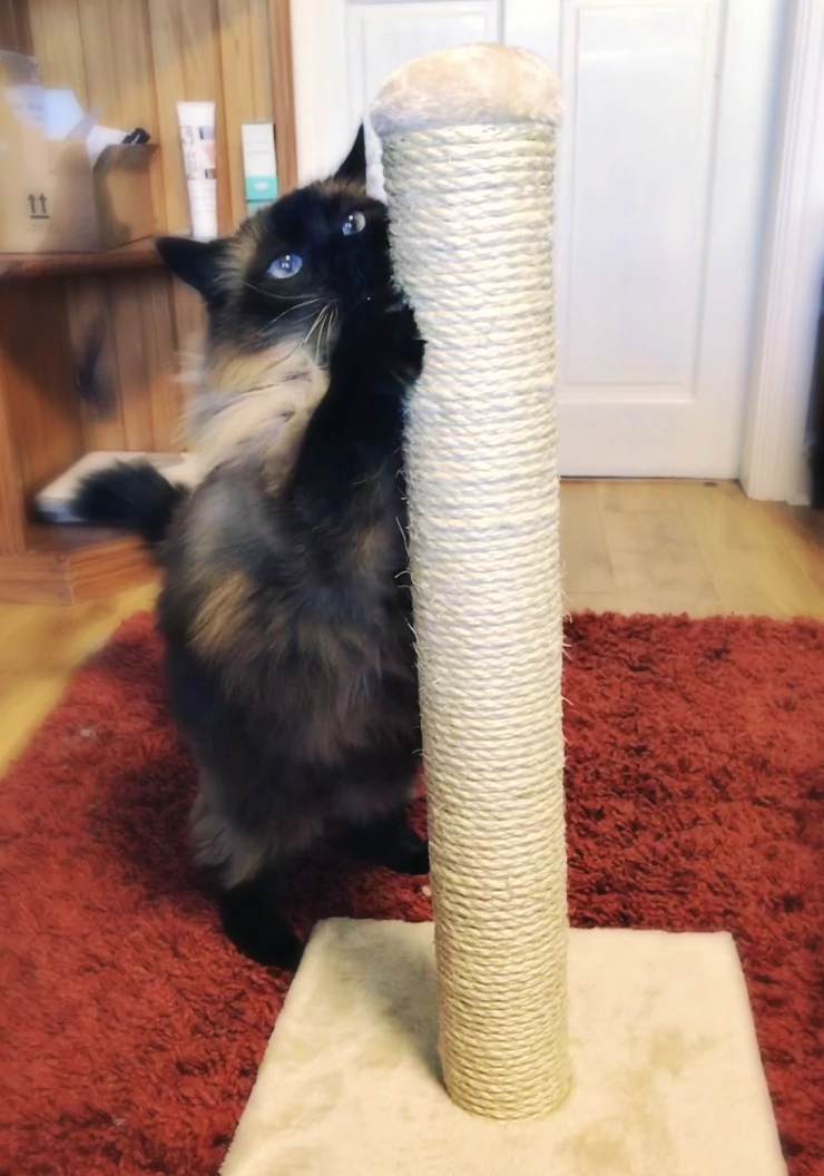 Beschriftung Mila befürwortet diesen neuen kratzbaum!
