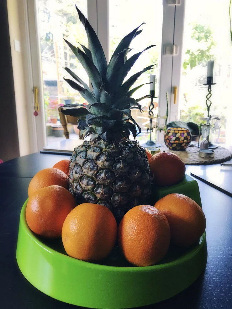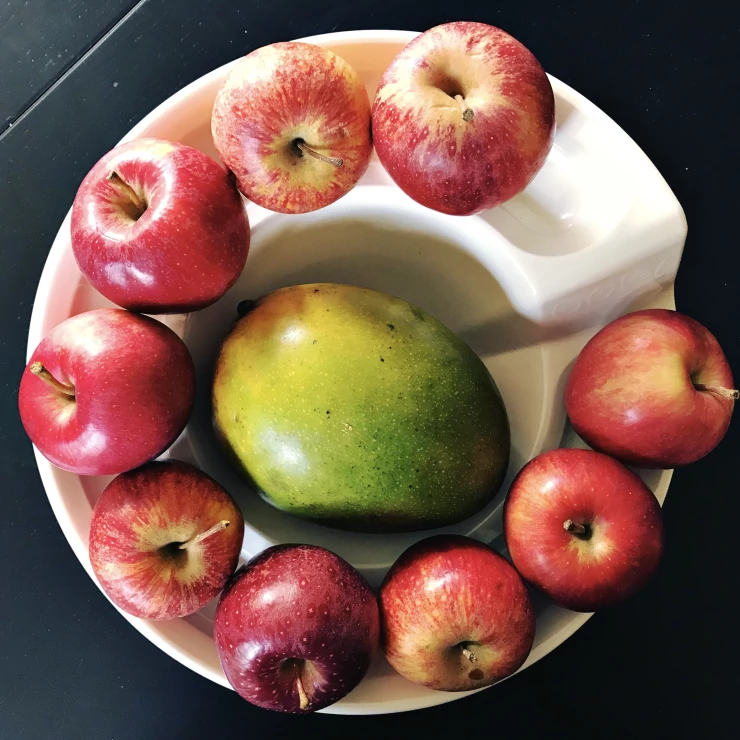 Beschriftung In dieser eleganten schale werden kleinere früchte nicht von großen zerquetscht :)