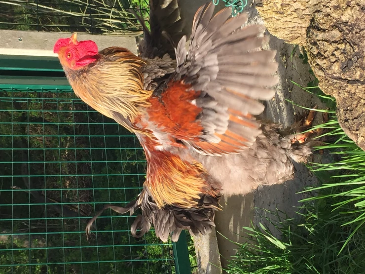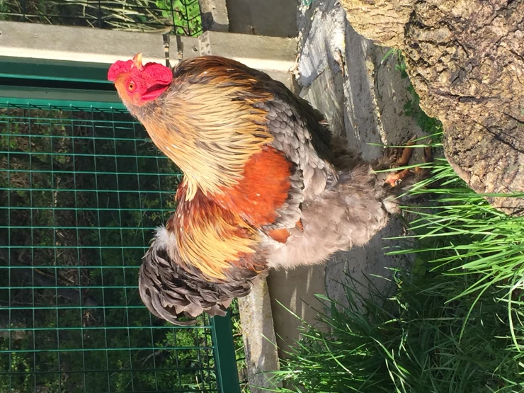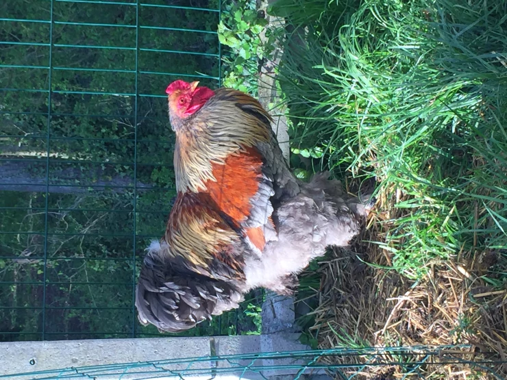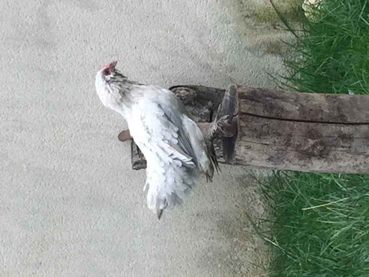Beschriftung Huhn auf pfosten sitzend