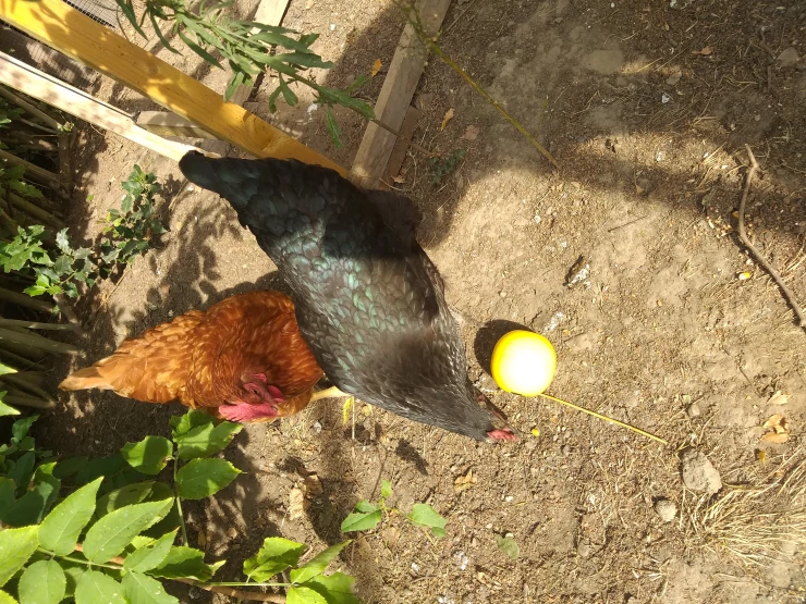 Beschriftung Hühner spielen mit manna pro chicken spielzeugball