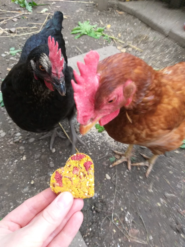 Beschriftung Hühner interessiert an keksen