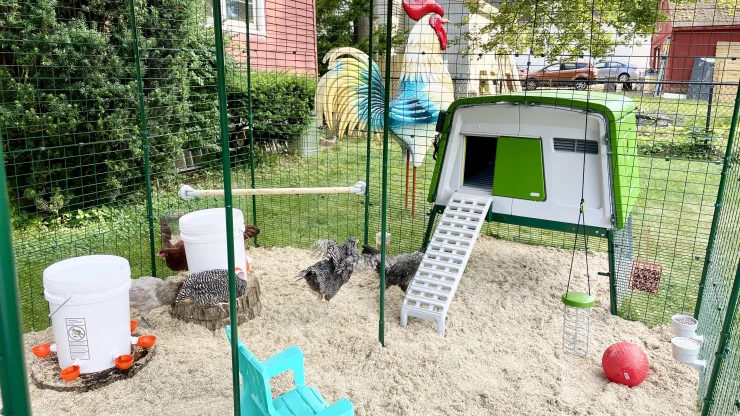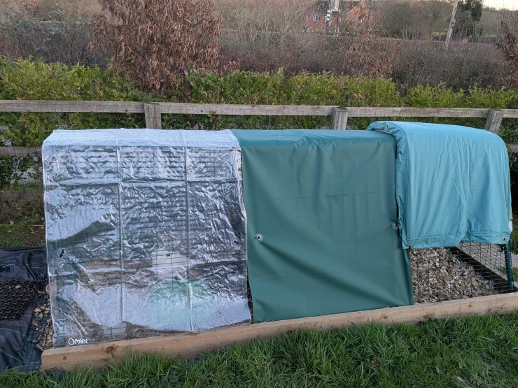 Beschriftung Reds freiland-ferienhaus, bedeckt mit einem der vielen accessoires von Omlet"heavy duty tarp", in gehweite zu ihrem Omlet Eglu Go up.