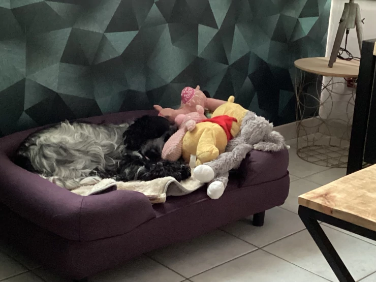 Beschriftung 19 jahre alter moggie in seinem nestbett