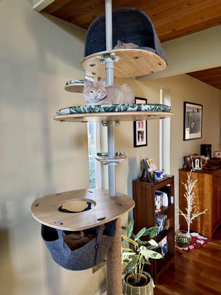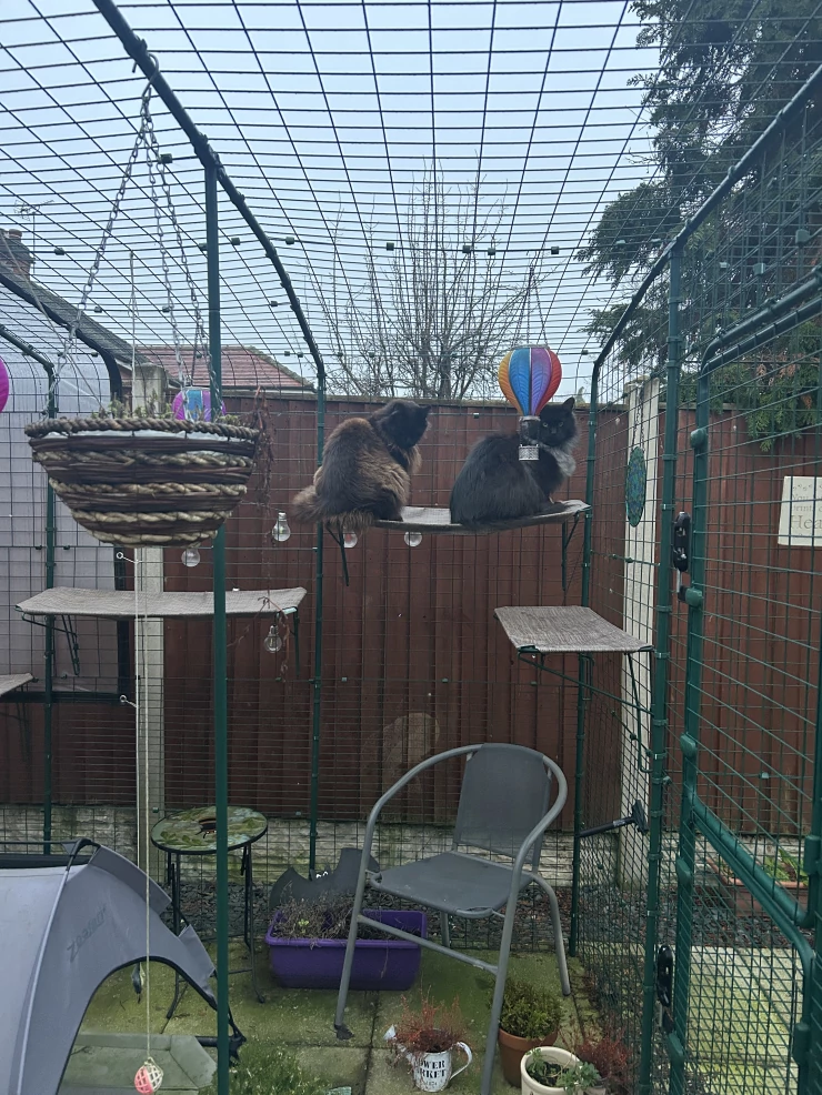 Beschriftung Nach unserem hühnerstall Omlet, sind wir immer noch von diesen produkten überzeugt. meine katzen lieben diesen kratzbaum für drinnen, nächstes projekt ist der catio!