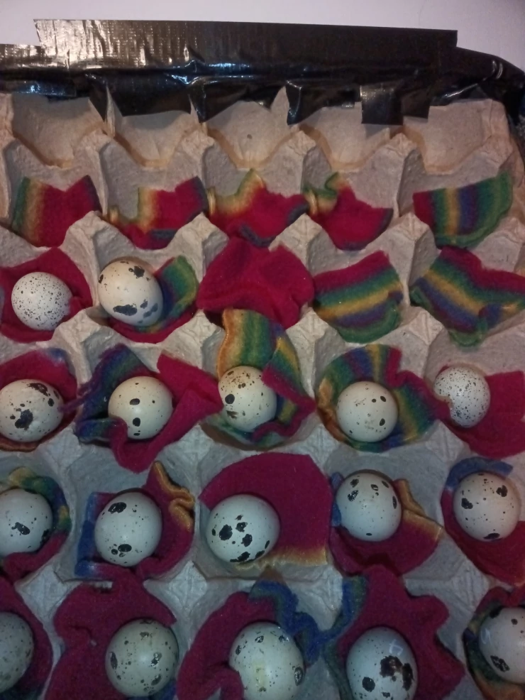 Beschriftung Meine allerersten eier von meinen 2 jungwachteln!!! ich dachte ich hätte ein paar...nein, habe 2 mädchen!!! sie singen so schön💖🥰