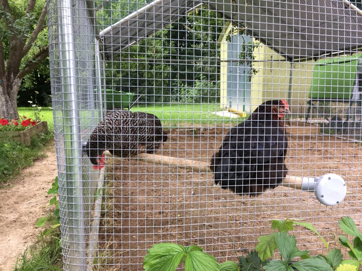Beschriftung Dursch die feinmaschigen unteren Teile kommt kein Huhn durch!