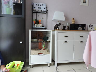 Beschriftung Der käfig unserer wüstenrennmäuse in unserem wohnzimmer