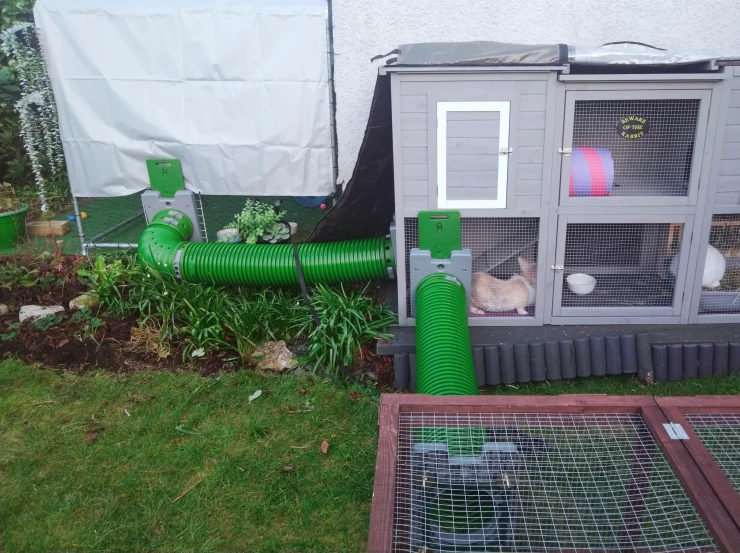Beschriftung Der garten Omlet, der durch einen steg mit der höher gelegenen veranda Omlet verbunden ist (2 zusätzliche, separat erhältliche platten wurden benötigt, um die rückseite der veranda abzudichten)