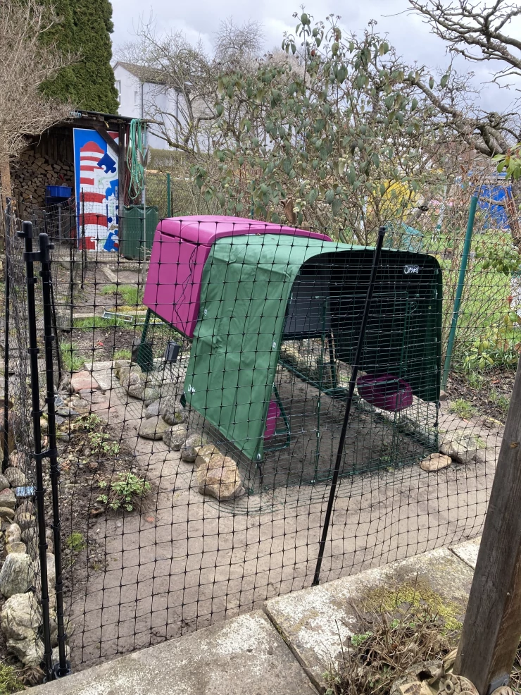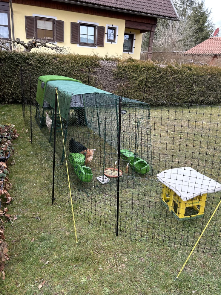 Beschriftung Henne im trockenen unter dem haus + die 3 planen darunter