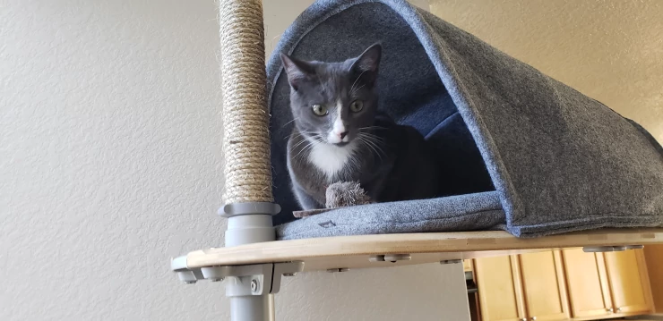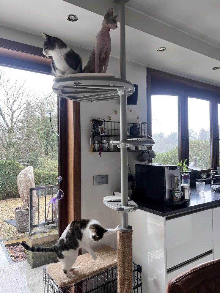 Beschriftung Wir sind sehr zufrieden mit der outdoor-kletterstange. sie steht jetzt in der küche, bis die katzen nach draußen in den auslauf können. so können wir die kletterstange zu allen jahreszeiten genießen.