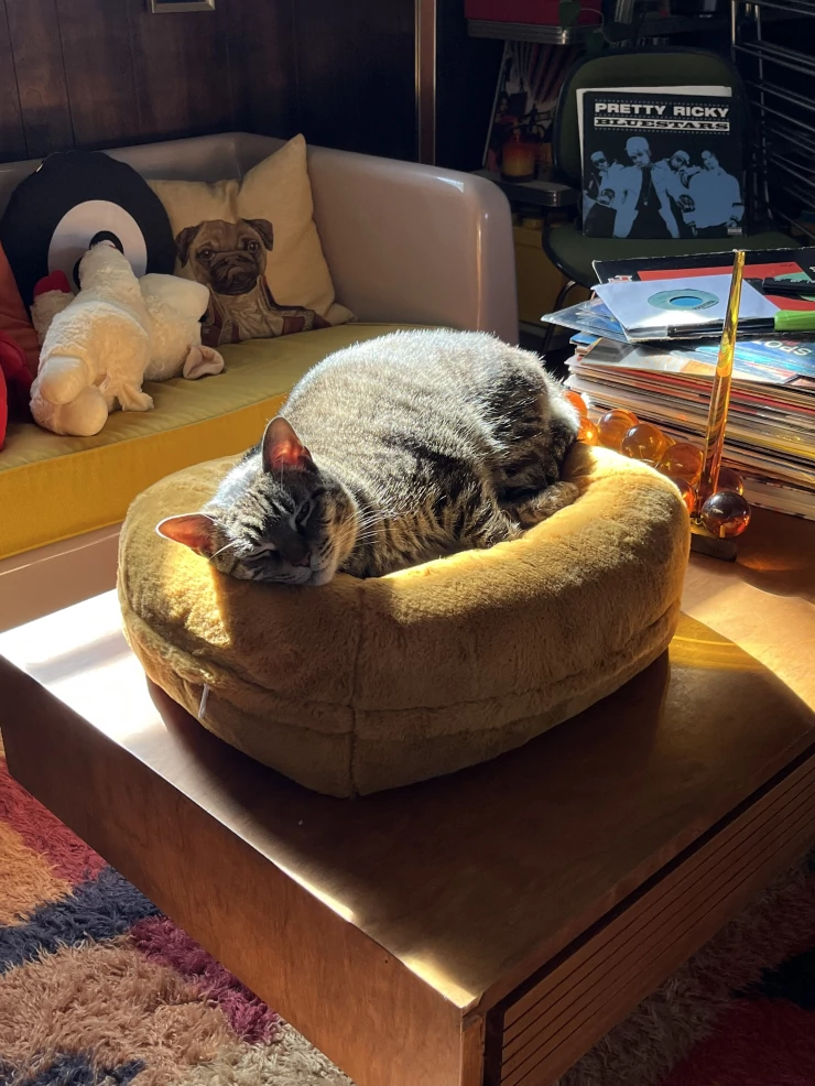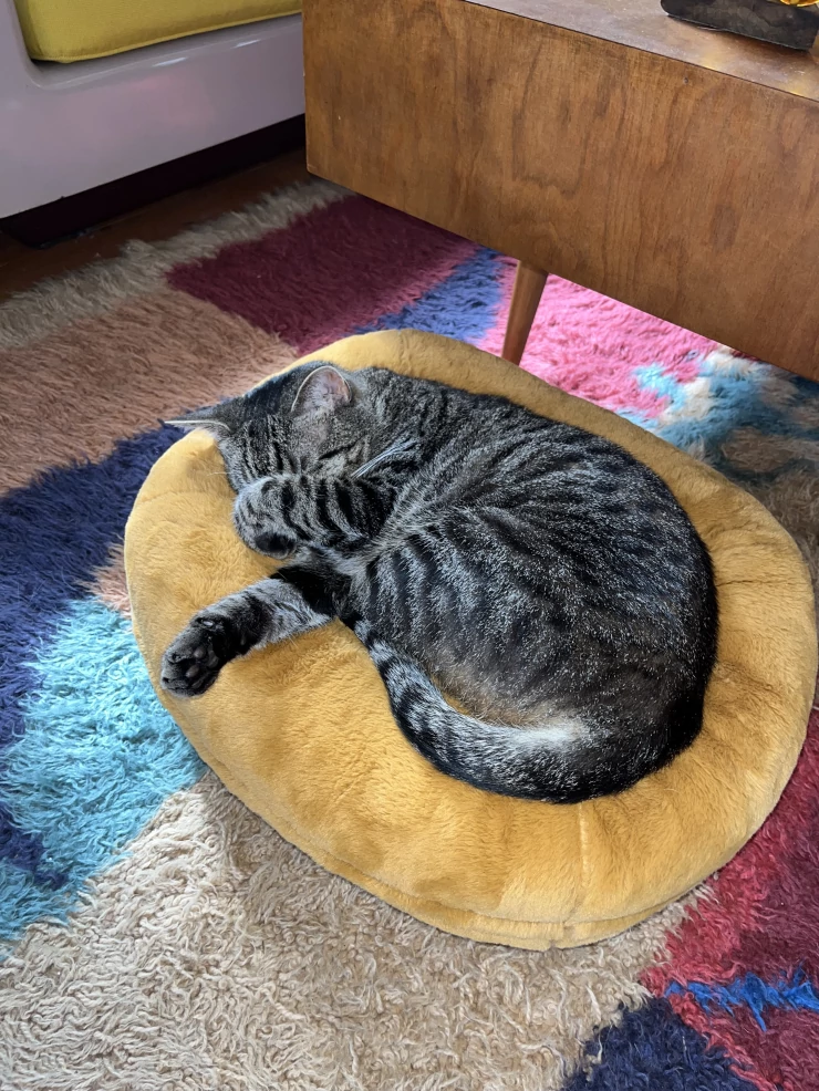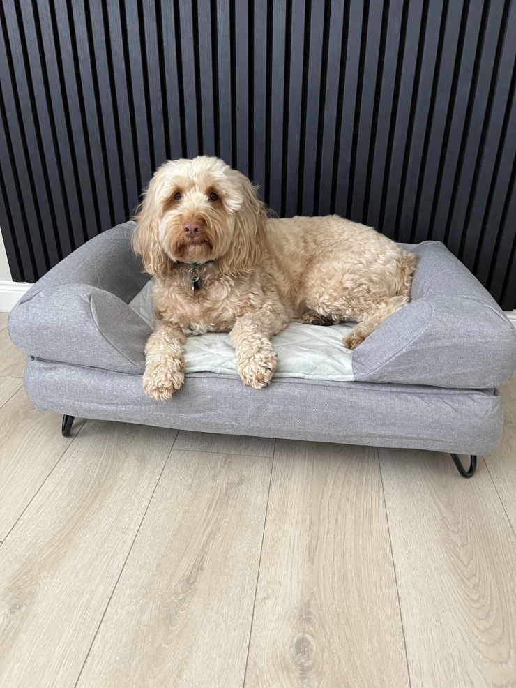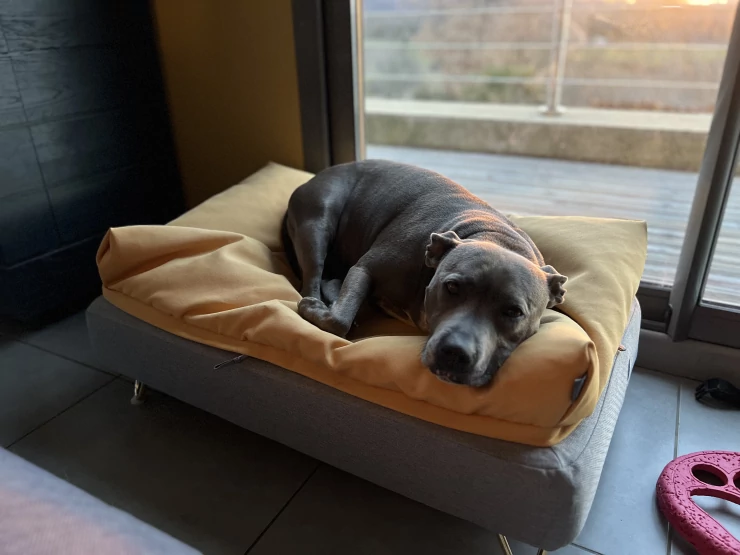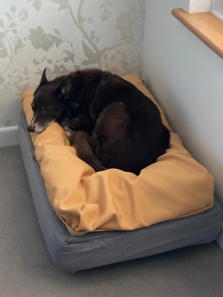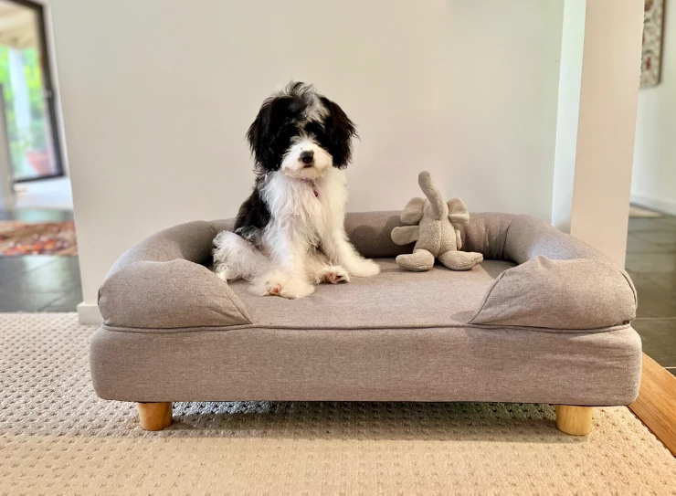 Beschriftung Liebt sein neues bett!
