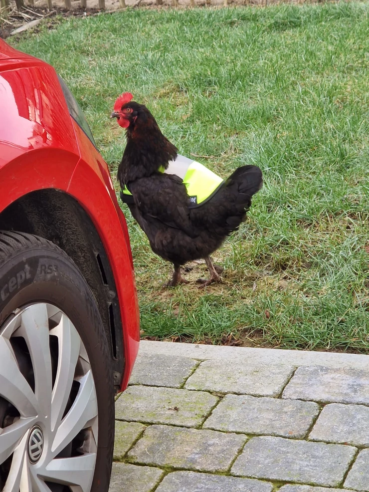 Beschriftung Unsere hühner sind glücklich in ihrem neuen hühnerstall Eglu Cube