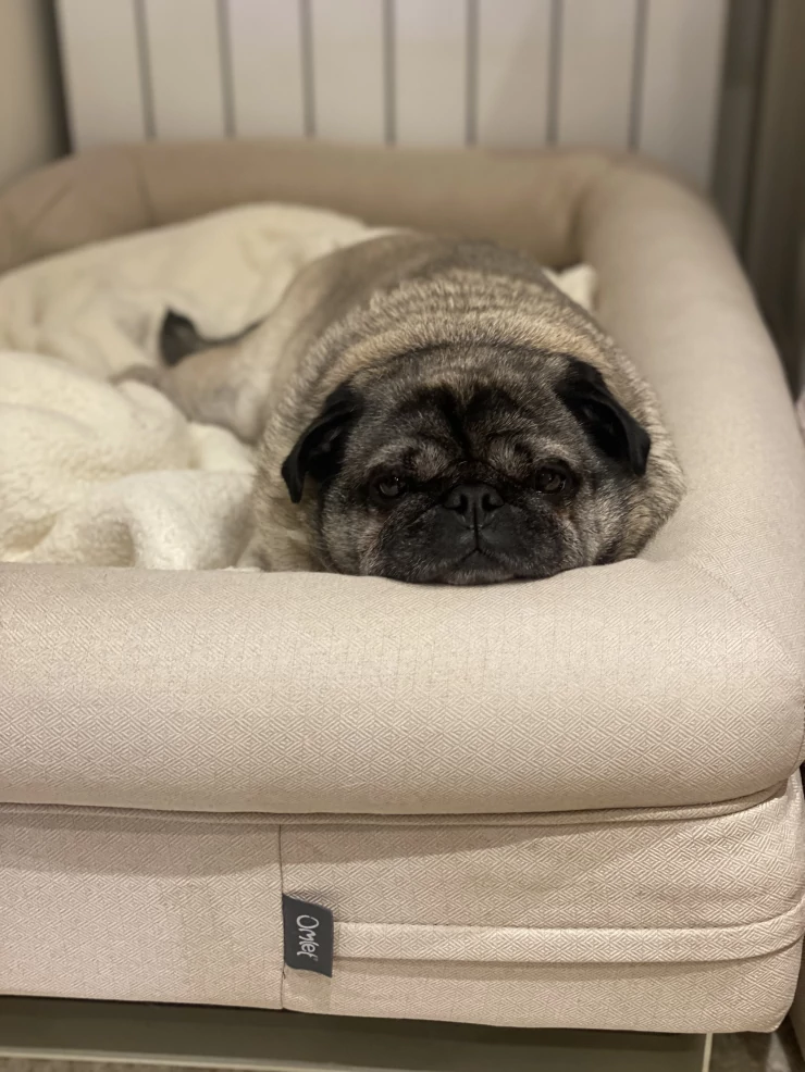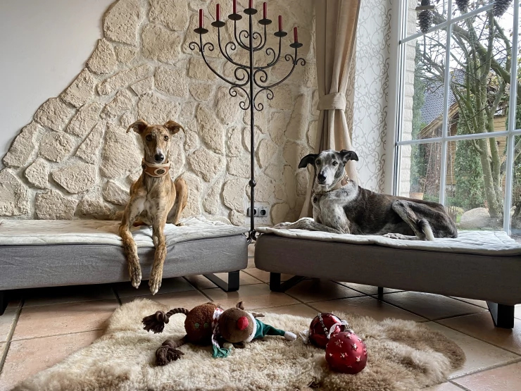 Beschriftung Unsere Hunde Linus und Marley waren sofort begeistert von den Betten. Sie sind hochwertig verarbeitet und bieten unseren großen Hunden genügend Platz zum ausruhen nach ihren Spaziergängen. Sehr dekorative Luxusbetten!