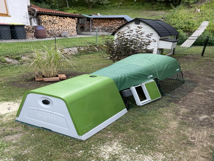 Beschriftung Hühnerstall Eglu Cube mit 3 brahmas