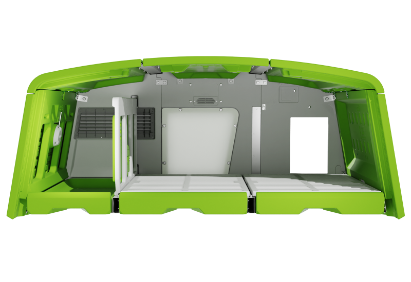 Die Wandpaneele des Eglu Pro sind die gleichen wie beim Eglu Cube. Die doppelwandigen Paneele schließen die Luft ein und isolieren den Stall, sodass er das ganze Jahr über genutzt werden kann.