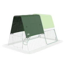 Im Sommer kann das Klarsicht-Cover gegen ein dunkelgrünes Allwetter-Cover ausgetauscht werden, um die Hühner vor der heißen Sonne zu schützen.