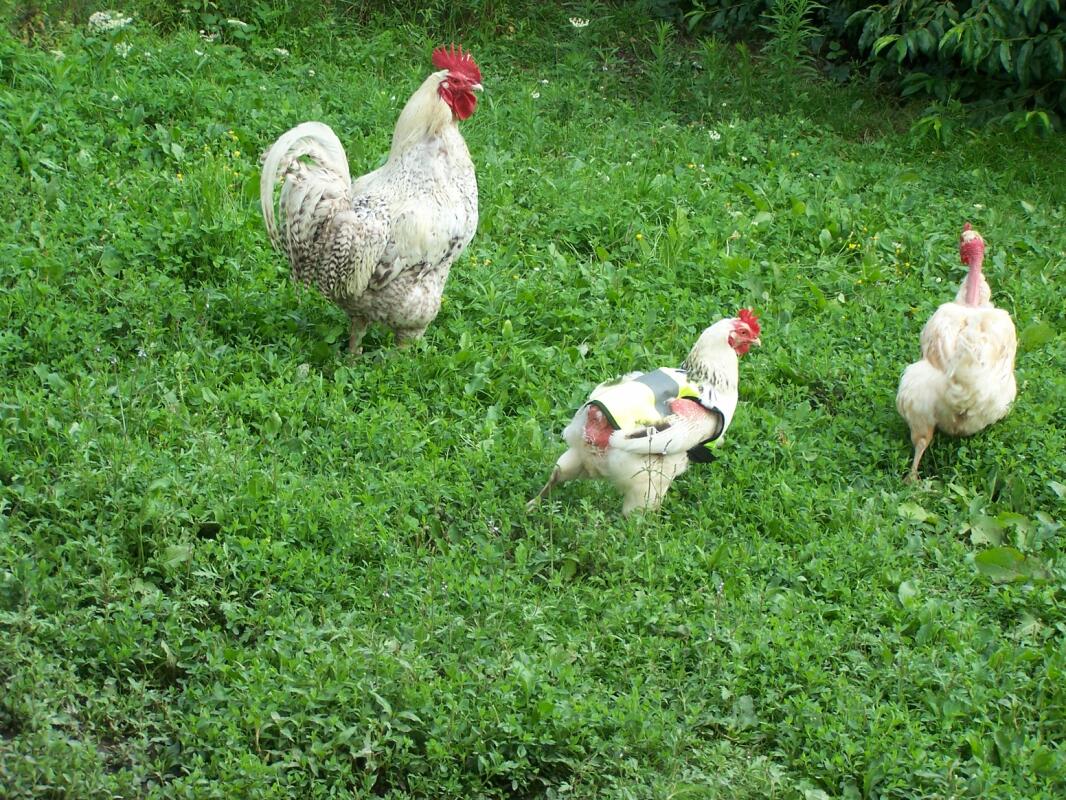Die Warn- und Tretschutzwesten sind sehr hochwertig. Sie können für alle Hühnergrößen verwendet werden und lassen sich leicht anlegen, ohne beim Tragen zu verrutschen. Dass unser Hahn allerdings die Hühner, die damit ausgestattet sind, jetzt böse jagt, liegt wohl eher an seinem Modegeschmack, anscheinend rufen die Leuchtfarben bei ihm Aggressionen hervor. Insofern besitze ich jetzt 10 Westen, die ungenutzt im Karton eingelagert sind.