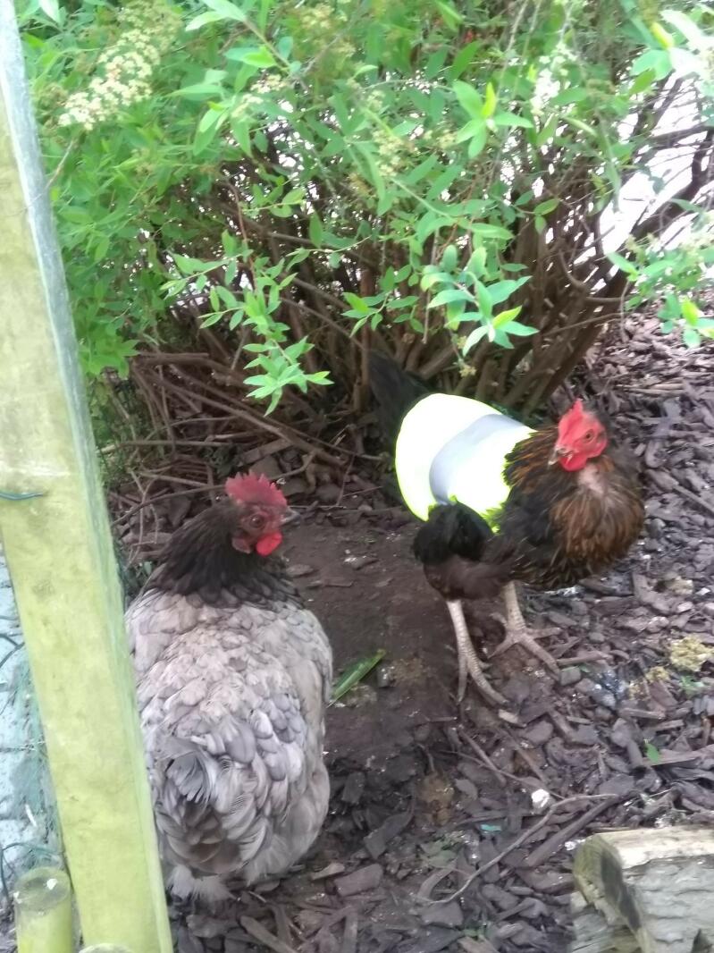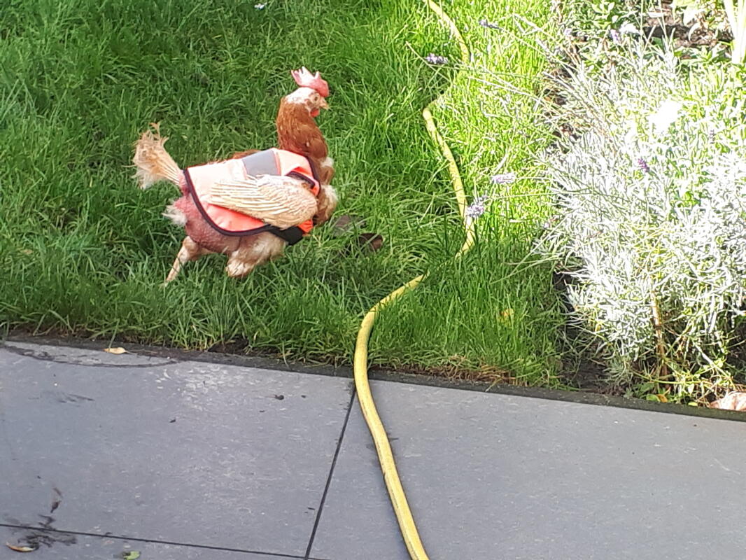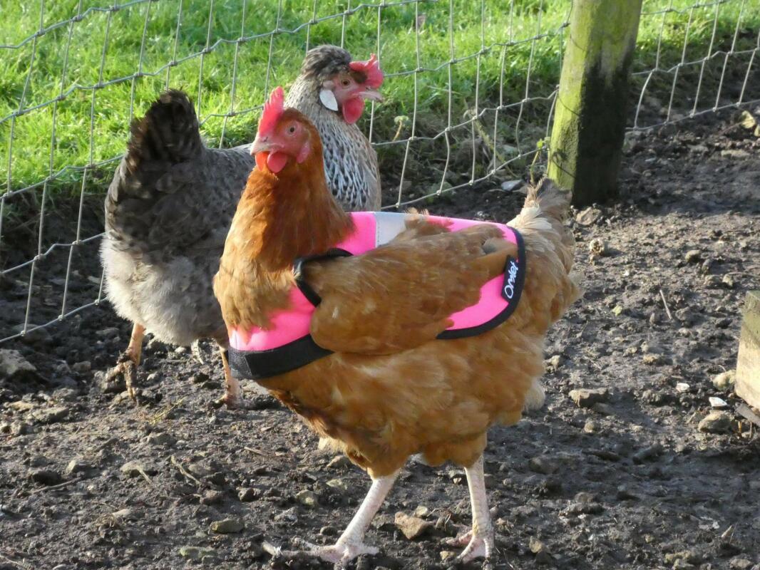Die Hühnerwesten von Omlet sind super in der Passform für Hühner wie Bresse bleu. Sie haben einen guten Halt und schneiden nicht ein. Ich hatte schon Westen von anderen Herstellern mit Gummi, das war absolut nix.