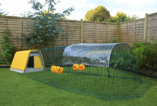 Wenn die Abdeckungen über das Gehege gespannt sind und starker Schneefall fällt, sollte der Schnee vom Dach entfernt werden, damit die Gitterelemente durch das Gewicht nicht beschädigt werden.