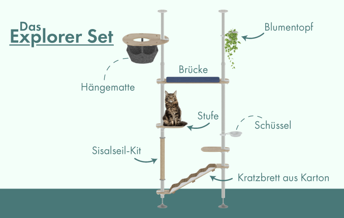 Warum sollten Katzen eigentlich nicht ihren ganz eigenen Spielplatz besitzen? Deshalb haben wir den Freestyle Katzenkratzbaum mit Zubehör entworfen, von dem du sicher sein kannst, dass deine Katze ihn nutzen wird. So bekommen die Tiere die Bewegung und Stimulation, die sie benötigen. Und wenn sich die Dinge einmal ändern, kannst du Teile hinzufügen, bewegen oder austauschen, ohne den gesamten Baum ersetzen zu müssen. Von uns entworfen, von dir zusammengestellt und von deiner Katze geliebt.